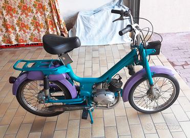 Vendo ciclomotore d'epoca Califfo 50 cc. del 1971 motore Rizzato. Riverniciato nel 2000, cambiato sella e pedali, montato contachilometri, in buone condizioni motore funzionante, viene data una camera d'aria nuova, da allora è rimasto in garage e non è stato più usato causa perdita del libretto. Per rimetterlo in strada seve il nuovo collaudo alla motorizzazione.