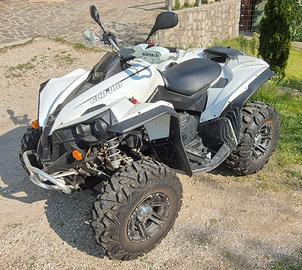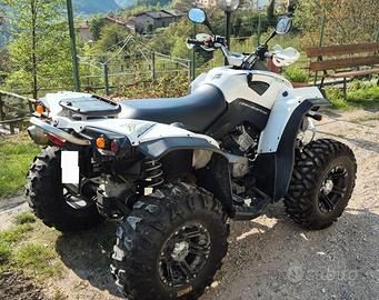 Anno 2012, 500cc, bicilindrico - 4t, classe ambientale Euro 2, Kw 12,5, immatricolato targa bianca, Km 9792, tagliandato, revisione 05-2027, omologato per 2 posti a sedere, trazione 4x4 con differenziale, cambio automatico, marcia avanti, ridotta, veloce e retromarcia, ruote ant. e post. 12", omologato per eventuale montaggio gancio traino posteriore, condizioni di meccanica e telaistica ottime, kit parafanghi allargati, cerchi in lega colore nero, pneumatici maggiorati omologati, battistrada al 90%, paramani Acerbis, doppie chiavi, libretto uso e manutenzione, bauletto posteriore. Si guida con Patente B e B1 a 16 anni. Vendo per inutilizzo, passaggio proprietà a Vs. carico