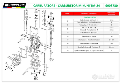 Carburatore Mikuni TM24 v.piatta Made in Japan