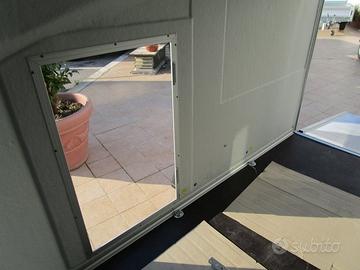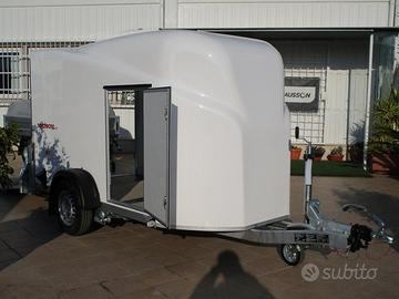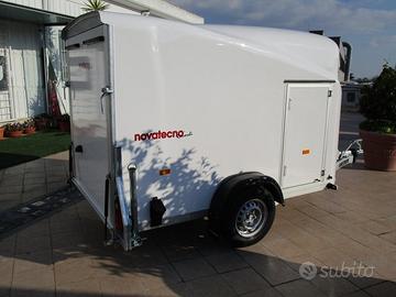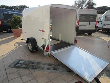 Interamente chiuso con struttura in vetroresina e rampa posteriore basculante.