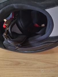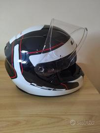 Casco integrale accessoriato di doppia visiera la prima trasparente antigraffio antinebbia,la seconda parasole, interni confortevoli e completamente removibili calotta di policarbonato nessuna usura negli attacchi con automatico di rapida estrazione, presa e espulsione aria,traspirante e antibatterico predisposto x audio bluetooth indossato 2 volte x brevi tragitti nessuno graffio colori brillanti