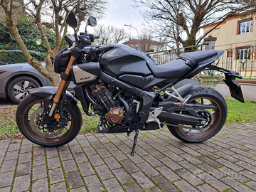 CB 650 R E-CLUTCH matt gunpowder black metallic puntale originale Honda protezioni serbatoio originali Honda Specchietti bar end Presa usb a manubrio tagliando ufficiale Honda ancora 5 anni garanzia Honda