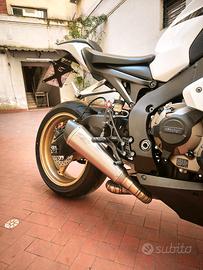 Come da titolo vendo il mio CBR 1000 rr fireblade del 2009 con 46000 kilometri La moto è stata completamente revisionata. Tutt'ora la uso tutti i giorni per lavoro e svago. Lavoro eseguiti Tagliando completo Freni completi Pompa del freno RCS Manicotti della domino Nuovi Para leva e contrappesi Nuovi Tubi in treccia anteriore e posteriore Para carter della GB Racing Revisione forcelle complete Revisione mono ammortizzatore Revisione completa dell'impianto di raffreddamento Revisione radiatore Cambio filo frizione Trasmissione nuova completa Conta marce Catena corona e pignone -1 Carene HRC di colorazione bianca rossa e blu. Pedane arretrate Portatarga sportivo Frecce sportive al posteriore Wrapping sui cerchi di colore oro (si possono togliere) Monoposto Frizione fatta a 35000 kilometri Revisione motorino di avviamento Batteria in gel nuova comprata un mese fa' Mappata con scarico Fratelli Fresco 180 cavalli alla ruota. Rispondo di tutti i pezzi originali tra: Pedane Catalizzatore Scarico originale Portatarga originale Stop e frecce originali al posteriore Vendo per cambio genere. prezzo 7500 trattabili. Accetto permute di mio gradimento Accetto come permuta R1 big bang RSV4 1000 GSX S 1000 GSX S 750 Ovviamente di pari valore.