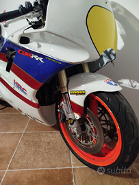 vendo CBR 600 prima serie pronto pista, impianto elettrico e fanaleria eliminata, scarico Arrow con db killer estraibile , pedane arretrate, forcelle rovesciare della versione RR , codone , carene vetroresina , radiata quindi senza costi di trapasso, bollo, ecc..