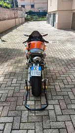 come da titolo vendo CBR 600rr del 2005 con 41 mila km, acquistata a inizio anno. tagliando completo subito dopo l'acquisto( olio, filtro olio, filtro aria, candele), forcelle revisionate, pompa benzina sostituita, catena nuova, scarico Arrow omologato, pedane arretrate, semimanubri aftermarket, pasticche anteriori SBS sinterizzate misto strada/pista, tubi in treccia, spurgo freni, specchietti stealth, dispongo di due selle pilota e unghia per monoposto, sicuramente mi sto scordando qualcosa. attualmente monta un treno di supercorsa sc1, cedo anche un treno di pirelli rosso 4 ancora con la cera e cedo anche un kit carene per pista. dall'acquisto la moto è stata messa in ordine di marcia e usata 2 volte al circuito di pomposa. per qualsiasi domanda o informazione sono sempre disponibile. prezzo trattabile.