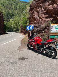 Vendo CBR 500 R ABS del 2020 per passaggio a cilindrata superiore, perfetta per neopatentati al limite per la patente A2, tenuta sempre bene e in garage, cupolino + tamponi paratelaio Puig (intercambiabili e rimovibili), cavalletti e sellino monoposto, monta le Pirelli Diablo Rosso Corsa IlI, montate a metà stagione 2025 con 2000 km, tagliando effettuato a inizio stagione 2025 e bollo pagato inizio 2026.