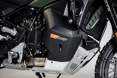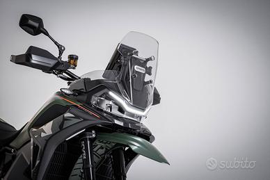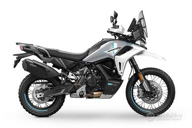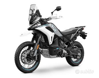 CFMoto 1000MT-X, la nuova ammiraglia adventure della casa, pensata per chi cerca prestazioni elevate, comfort nei lunghi viaggi e vere capacità off-road. Una moto completa, robusta e moderna, pronta ad affrontare qualsiasi terreno. Il cuore della moto è un potente bicilindrico da 946 cc, capace di erogare circa 113 CV e oltre 100 Nm di coppia, con una spinta corposa fin dai bassi regimi e grande allungo Perfetta sia per macinare chilometri in autostrada che per divertirsi su percorsi più impegnativi. Ciclistica di altissimo livello: Sospensioni KYB completamente regolabili con lunga escursione Freni Brembo con doppio disco anteriore Ruote a raggi 21"/18" per vero utilizzo adventure - risultato: massima stabilità su strada e grande efficacia in off-road Dotazione tecnologica top di gamma: Ride by wire e 5 modalità di guida (Rain, Off Road, All Terrain, ecc.) Quickshifter bidirezionale e frizione antisaltellamento Controllo di trazione, ABS cornering e piattaforma inerziale Bosch Cruise control Display TFT touch da 8" con connettività e app dedicata Comfort da vera viaggiatrice: Serbatoio da 22,5 litri (autonomia elevata) Sella e manopole riscaldate Posizione di guida comoda anche per lunghe percorrenze Peso contenuto per la categoria (circa 220 kg in ordine di marcia) e grande equilibrio generale, che la rendono gestibile anche fuori dall'asfalto Perfetta per: viaggi lunghi e avventure uso misto strada/sterrato chi cerca un'alternativa più accessibile alle maxi enduro premium 1000 MT-X disponibile in Tactical Green or Aerolite Grey. Prezzo listino € 10.490,00 Iva Inclusa Franco Rivenditore* Prezzo in promozione a € 9.990,00 Iva Inclusa Escluse spese immatricolazione e messa in strada € 300,00. Finanziamenti personalizzati