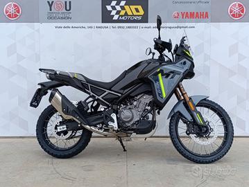 CF MOTO 450 MT LA PICCOLA ADVENTURE DI CASA CF MOTO GUIDABILE CON PATENTE A2 EQUIPAGIATA DI SERIE CON: PARAMANI FORCELLE KAYABA A STELI ROVESCIATI DA 41 mm MONO A LEVERAGGIO PROGRESSIVO SISTEMA ABS DOPPIO CANALE PNEUMATICI TUBELESS MOTO IN PRONTA CONSEGNA IN ALLESTIMENTO PARAFANGO ALTO O BASSO NELLA COLORAZIONE TUNDRA GRAY E ZEPHYR BLUE PREZZO 5.990 F.C (ESCLUSA IMMATRICOLAZIONE)