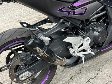 Vendo in perfette condizioni cf moto 450sr fine 2023 come nuova e multiaccessoriata. La moto presenta grafiche, cupolino nero, scarico decat aftermarket, portatarga sportivo, gomme al 70% e altre chicche. con il suo bicilindrico eroga 48 cavalli: è la moto piu potente per la guida con patente a2 quindi perfetta per neofiti o per passaggio da 125, la moto presenta freni brembo e abs garantendo affidabilità rimanendo un ottima scelta per uso cittadino e non. mai fatto uso in pista o in giri extraurbani. attualmente ha 14k chilometri ed è tenuta perfetta. per ulteriori info contattatemi. prezzo poco trattabile vendo per passaggio a cilindrata superiore