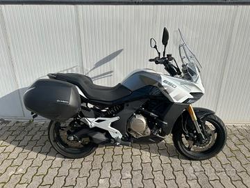 Bellissima CF Moto 650 MT, anno 2023 in colorazione bianca, una crossover versatile e moderna, ideale sia per l'uso quotidiano che per i viaggi. Moto recente, comoda, affidabile e pronta a macinare chilometri.