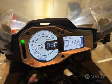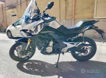 Vendo la mia Cf Moto 650Mt, una moto molto modulabile con motore e elastico ottima per città ed escursioni, la moto si prensenta in perfette condizioni, con tris di valigie e faretti aggiuntivi. Km circa 17000, circa 16.500 km rifatto tutto il motore con cambio di testata pistoni cilindri, catena di distribuzione e altro ovviamente tutto tracciabile. Gomme nuove con circa 1000 km Pirelli rosso corsa due. Vendo per passaggio a cilindrata superiore, accetto scambi.