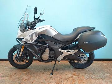 NOTE: Una enduro stradale di media cilindrata, robusta e affidabile, per chi cerca un rapporto qualità/prezzo davvero competitivo. In ottime condizioni estetico-meccaniche. ABS a doppio canale. Motore bicilindrico a doppio albero a camme in testa, con iniezione elettronica Bosch, da 56,5 CV (41,5 kW) a 8.250 giri/min e 54,4 Nm a 7.000 giri/min. Euro 5. Parabrezza regolabile. Paramani Acerbis. Paramotore tubolare. Forcella ant. rovesciata regolabile (precarico/estensione). Mono ammortizzatore post. regolabile (precarico/estensione). Fari Full LED. Strumentazione TFT a colori da 5", con luminosità regolabile. Bluetooth. Presa USB. Base cavalletto laterale allargata. Piastra portapacchi. Borse laterali originali CF Moto. Sella al gel, ribassata di 3 cm (ora 80 cm da terra). Cavalletto alzamoto lungo e nottolini rinforzati. Completamente finanziabile, anche senza anticipo, con soluzioni flessibili e personalizzate. Servizio di consegna a domicilio in tutta Italia con trasportatori specializzati (costo da conteggiare a parte a seconda della distanza).