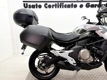 CFMOTO MT 650, IMM.05/2022, KM 1300, COLORE NEBULA WHITE, DOTATO DI ABS, RIDING MODE,FARI LED, FRECCE LED , STRUMENTAZIONE TFT , CONNETTIVITY, SELLA COMFORT, BARRE PARAMOTORE, PARAMANI CON DEFLETTORI, CUPOLINO FUME', TRIS BAULI CON POGGIA SCHIENA.