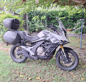 Vendo bellissima CF Moto 650 MT in perfette condizioni motore Kawasaki 650 cc bicilindrico. Ultimo tagliando a km 16.800. Gomme sostituite con l'ultimo tagliando e provvista di tris di borse. Immatricolata il 03/23. Moto tenuta in box.