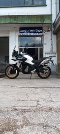 Equipaggiamentidi serie unici: Schermo TFT, parabrezza regolabile, 2 ride modes, acceleratoreelettronico ride by wire e cruise control, Paramotore alto e basso, Paramani,Protezione coppa olio, Portapacchi posteriore e supporti valigie laterali.