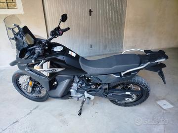 CF moto 800 MT X, nera, 476 km, nuova, versione low. 4 anni di garanzia, immatricolata il 25 marzo, tagliando dei 1000 km da fare (gratuito). Cruise control,cambio elettronico, cupolino regolabile, pressione e temperatura gomme, mirroring telefono sul display che ha ancora la pellicola protettiva, posizione moto e allarme di spostamento su app, app con una miriade di dati,comandi retroilluminati, gomme tubeless,fari e display ad accensione automatica. Vendo perché, benché abbia provato per due uscite, la schiena non dà tregua. questa versione permette,anche a chi non è altissimo( io sono alto 175 cm),di poggiare i piedi per terra benissimo e,per strada, ha un baricentro bassissimo che fa divertire molto. la moto non è ancora" sciolta",per cui ho attuato tutte le cautele del caso,non superando mai i 4500 giri e scaldandola andandoci. Valuto permuta con Suzuki V strom 650, max 25.000 km e 3000 euro, così,per non restare a piedi,anche se lo userò raramente per i problemi di cui sopra.