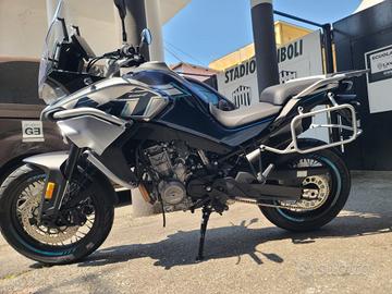 Favolosa aziendale mai in strada forte risparmio da listino, spese di immatricolazione a carico dell'acquirente.Eventuale consegna in tutta Italia.RAYMOTORS KYMCO CFMOTO IN LAVAGNA (GE),IN VIA RIBOLI 51 ENTRATA CAMPO DA CALCIO LAVAGNESE tel mail: info@raymotors.it Motore bicilindrico basato su piattaforma KTM da 799 cc di 67kW (91,1 CV) di potenza.Cornering ABS, schermo TFT, parabrezza regolabile, 2 ride modes, acceleratore elettronico ride by wire e cruise control.