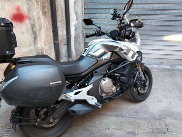 CF Moto 650 MT immatricolata 26 Maggio 2022 con 26380 km. Completa di faretti supplementari di profondità collegati sottochiave, paramani e adesivi resinati paraserbatoio, parafango paraschizzi ruota posteriore. Cupolino regolabile, borse rigide laterali shad dove entra un casco modulare, barra portatelefono. Sempre tenuta al coperto, manutenzione eseguita regolarmente e tagliandata ogni 5000Km. La moto si trova a Catania. Per info telefonare al 3487093124