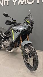 La nuova CFMOTO 450MT offre tanta versatilità e facilità d'uso. Grazie al bellissimo equilibrio tra motore e ciclistica, il peso ridotto e le dotazioni rivolte al turismo senza confini anche per utilizzo in fuoristrada. La 450MT è una piccola grande moto realizzata per accontentare gli amanti dell'Adventouring senza confini. Dotata di paramani e paramotore. Motore Bicilindrico 4 Tempi Potenza Max 31 kW (42,2 CV) a 8.500 min-1 Distribuzione Doppio albero a camme in testa (DOHC) - 4 valvole Cambio 6 marce Telaio Tubi di acciaio alto resistenziale Sosp. Anteriore KAYABA Forcella upside-down Ø 41 mm forcelle a steli rovesciati regolabile nel precarico e nell'idraulica in compressione ed estensione Sosp. Posteriore Ammortizzatore singolo regolabile in precarico/idraulica, a leveraggio progressivo Pneumatici Tubeless Ant. 90/90 21 Post. 140/70 R18 Alt.140/80-18 Prezzo di listino 6.190 F.C Prezzo in promo 5.990 F.C Tua a partire da 90 euro al mese Possibilità di finanziamento intero importo senza anticipo