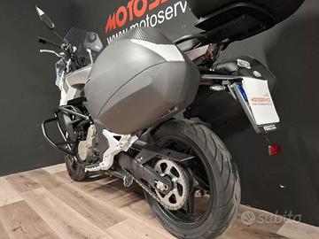 Accessoriata con: BORSE LATERALI, BAULETTO POSTERIORE, BORSA SERBATOIO, PARAMOTORE e PIASTRA ESTENSIONE CAVALLETTO.