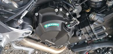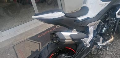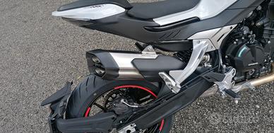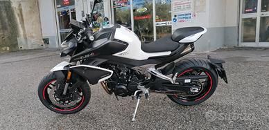cf moto 800NK ADVANCED,abs,cruise control motore: Bicilindrico 4 tempi Raffreddamento Liquido Cilindrata 799cc Potenza Max 70 kW (95,2 CV) a 9.250 min-1 Distribuzione Doppio albero a camme in testa (DOCH) 4 valvole Cambio 6 marce CICLISTICA Telaio Tubi di acciaio alto resistenziale Sosp. Anteriore Forcella Ø 43 mm con forcelle a steli rovesciati regolabile nel precario e nell'idraulica in compressione da stelo destro ed estensione da stelo sinistro Sosp. Posteriore Monoammortizzatore regolabile in precario e idraulica Freni Ant. doppio disco Ø 320 mm Post. radiali a 4 pistoncini Sistema con ABS a doppio canale Pneumatici Ant. 120/70ZR17 M/C Post. 180/55ZR17 M/C Dimensioni 2.146 x 818 x 1.137 mm Interasse a carico 1465 mm Altezza Sella 795 mm Massa a vuoto 175 kg Serbatoio carburante 15 L Velocità Max 220 Km/h Consumo 20 Km/l (*) Emissioni Euro 5 (120g/km CO2) motolullo marco
