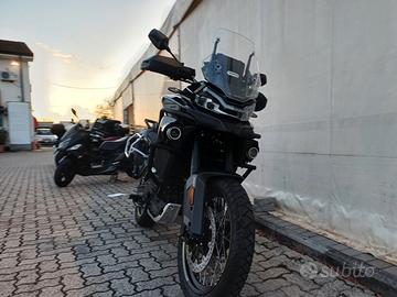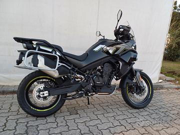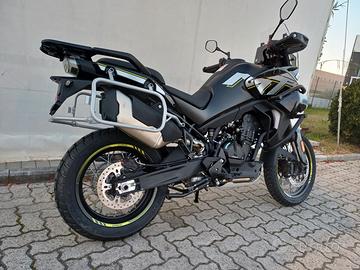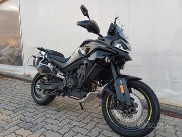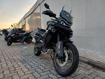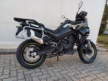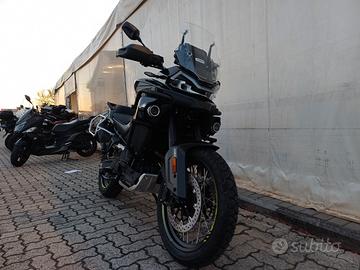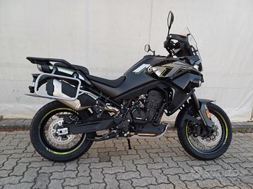800MT EXPLORE AVVENTURA SU OGNI TERRENO La maxi enduro progettata per il divertimento e il viaggio su ogni terreno. Motore bicilindrico basato su piattaforma KTM da 799 cc di 67kW (91,1 CV) di potenza: Elevate prestazioni e bassi consumi per affrontare qualsiasi viaggio. Ciclistica all'avanguardia grazie a forcella e ammortizzatore KAYABA upside-down, cerchi a raggi incrociati, pneumatici Michelin Anakee 110/80 R19 all'anteriore e 150/70 R17 al posteriore: stabilità e sicurezza in ogni condizione. Equipaggiamenti di serie unici: Cornering ABS, schermo TFT, parabrezza regolabile, 2 ride modes, acceleratore elettronico ride by wire e cruise control, sella e manopole riscaldate, ammortizzatore sterzo, cavalletto centrale, Quickshift bidirezionale, paramani e para-motore e TPMS. Strumentazione MMI da 8 pollici con angolo di visualizzazione di 180°, connettività Bluetooth e visualizzazione delle mappe del navigatore da smartphone: massima comodità in viaggio.