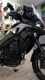 Ciclistica all'avanguardia grazie a forcella e ammortizzatore KAYABA upside-down, cerchi a raggi incrociati, pneumatici Michelin Anakee 110/80 R19 all'anteriore e 150/70 R17 al posteriore: stabilità e sicurezza in ogni condizione.