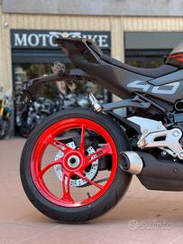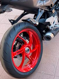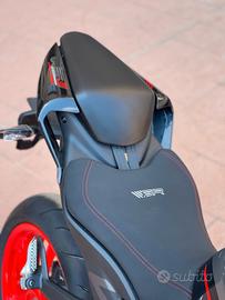 Con un forcellone monobraccio posteriore, cerchi rocchi e la marmitta più bassa e bombata.