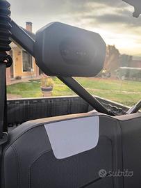 Dotato di serie di Verricello, gancio traino con presa elettrica, EPS, fari a LED, cerchi in lega e molti altri accessori. Possibilità di acquistare la versione come in foto con cabina completa (parabrezza anteriore con tergi e posteriore e porte laterali con finestrino apribile).