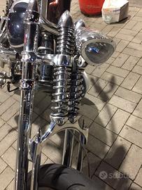 Moto unica al mondo omologata a libretto telaio penz performance, motore S &s super stock molto potente e unico, carburatore mikuni, comandi performance machine cerchi ricavati dal pieno primaria bdl, gomme cobra da 300 posteriore da 21 anteriore, lavori in foglia di argento, primaria da 5 pollici, doppie sospensioni, ect la cedo tagliandata e revisionata al momento della vendita a un prezzo molto al di sotto del suo valore per inutilizzo , la moto presenta i seguenti difetti: serbatoio da sostituire o riparare a causa di fessura laterale alcune cromature da riprendere sulla testata posteriore del motore, sostituzione pastiglie freno posteriore. Prego astenersi perditempo o chi non sa cosa sta comprando, sarei interessato a permuta solo con Touring Harley Davidson.