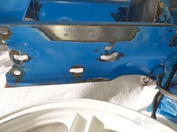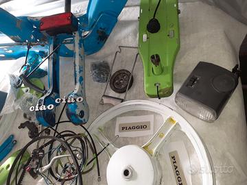 Ciao da terminare e verniciare , ho molti pezzi che consegnerò non visibile in foto , motore 50 , 3 mozzi ruota posteriore, serie sterzo nuova , 2 carburatori , copertoni semi nuovi , per mancanza tempo vendo do anche un kg di colore professionale con catalizzatore e diluente specifico. Il telaio necessita di passaggio perché è targato.