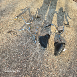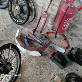 Ciao con variatore con forcella modificata ,ma cè la sua originale , motore completo di scorta,marmitta sito ancora nel cartone,3 manubri,6 ruote, 1 copertone , 3 selle parafanghi, plastiche lateralie altro ancora. in blocco