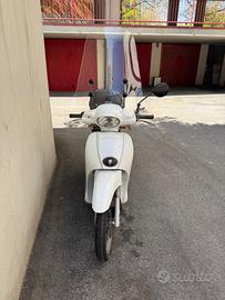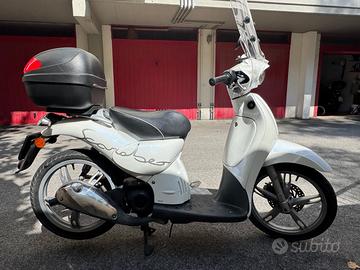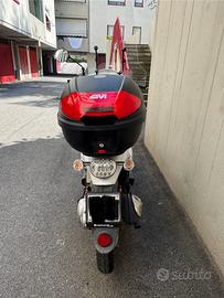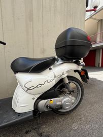 Vendo Scarabeo Aprilia 50 cc bianco completo di bauletto e parabrezzza, anno 2013. Pneumatici in buone condizioni, nessun problema di meccanica o di elettronica. Revisione effettuata nel 2025 con scadenza 2027. Chilometri 28.000, mai incidentato. Richiesta € 1000.