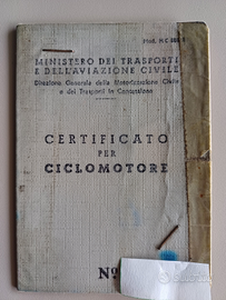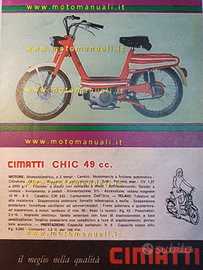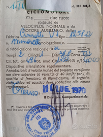 Vendo motorino Cimatti Chic Minarelli V1 49 cc. immatricolato nel 1970, completo di libretto, manuale officina per uso e manutenzione motore. Tipo 125822, 2 tempi, 1 cilindro da 49,6 cm3, 1.232 CV.
