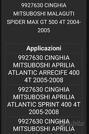 vendo cinghia trasmissione per piaggio Malaguti pugeot 400/500 ecc, usato pochissimi KM ,sostituita per errata diagnosi