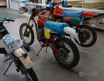 Vendo collezione moto da cross tutte restaurate e perfettamente funzionanti. Caballero 50 "TX96" del 1976; Aprilia RC 125 "B3" del 1978; Maico MC 250 Twin Link del 1983. Per ciascun pezzo ho le dettagliate schede e le foto "prima e dopo", per constatare il lavoro svolto su ciascun mezzo. Inoltre dispongo di documentazioni, comprese le certificazioni di Omologazione del Ministero dei Trasporti per la possibile reimmatricolazione per il Caballero e l'Aprilia. Prezzo in "Bulk" € 7.000,00 (Euro Settemila/00) con accettazione senza riserve. Solo per appassionati e collezionisti, no perditempo e speculatori, anche perché le moto sono complete in ogni loro parte e vengono vendute, così come da foto e per come descritto, con la clausola "Visto e Piaciuto", ovvero l'acquirente accetta esplicitamente i mezzi nello stato in cui si trovano, tutelando così il venditore da possibili ripensamenti o reclami futuri relativi a difetti o problemi non evidenti o non noti al momento della vendita. Inoltre, essendo questa una vendita fra soggetti privati, non usufruisce delle garanzie di legge delle concessionarie e dei diritti a tutela dei consumatori dell'UE, che non potranno essere esercitati. Operazione esente da IVA ai sensi dell'art. 10 comma 1 n. 27 D.P.R 633/72. Ritiro e spedizione a carico dell'acquirente. Disponibile anche a vendite separate con riserva di comunicazione dei prezzi per i singoli pezzi.