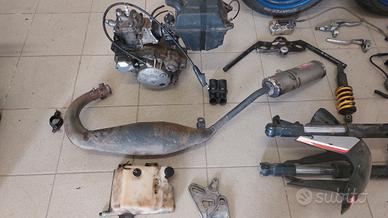 Vendo svariati pezzi ricavati dalla mia vecchia aprilia rs 125 del 2006 in seguito ad incidente. Come da foto dispongo di: -motore completo rotax 122 con CIRCA 24000km con carburatore dellorto phbg28 e cassa filtro(il motore gira bene, non garantisco nulla in quanto non sono un meccanico) -scarico omologato giannelli -vasca miscelatore -manubrio che è stato raddrizzato in casa in seguito a piegamento dovuto dall'incidente -forcelle anteriori originali curvate verso l'interno -mono ammortizzatore posteriore -radiatore completo di tubi e vaschetta per liquido -centralina nippodenso sbloccata (tagliato il ponte dei 7000 giri) -bobina con pipetta per candela -batteria bosch 12v -leve originali -coppia di cerchioni blu gommati con gomme metzeler, dischi freno originali e corona da 40 denti -carene "da battaglia" varie e cupolino trasparente Per il prezzo dei singoli componenti scrivetemi pure in privato, sono disponibile per chiarimenti vari.