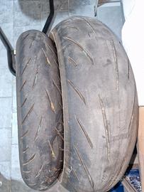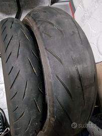 Vendo coppia di pneumatici moto Bridgestone Battlax Hypersport S22. Gomme sportive di ottima qualità, ideali per uso strada/pista. ✔ Vendute in coppia ✔ Modello hypersport Condizioni: gomme usate e quasi finite, soprattutto al centro, come da foto. Ideali per: uso pista per finirle stunt / burnout utilizzo temporaneo utilizzo casa -> lavoro