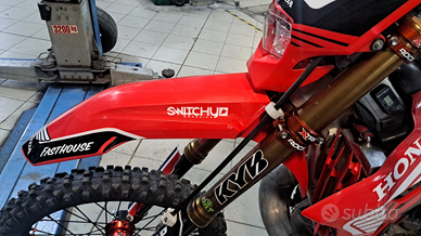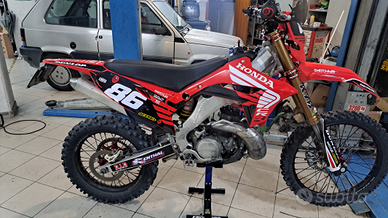 Vendo Honda cr 250 hm cre 250 del 2004 omologato solo enduro con tanti accessori tipo cilindro htm 265 con testa dedicata cerchi kite moose ant e post forcella kyb mono sowa cfr piastre kite radiatori maggiorati tubi in silicone manubrio rentahl 997 e tanto altro motore con 45 ore da quando e stato chiuso e molti ricambi della moto vendo a 6500 euro non scambio con nulla vendo e basta revisione valida fino al 2027
