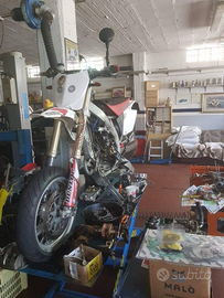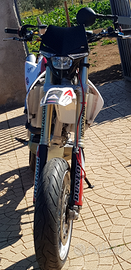 Honda 450 Motard omologato per passeggero guidabile con Pat A2 motore rifatto da meno di 10 ore la moto e ferma da qlk anno necessità di revisione ,revisione pompa freno anteriore ,presenta crepa sul parafango anteriore e qnd e al massimo dei giri. Piccole goccine di liquido raffreddamento dalla valvola premi stop della pompa acqua per il resto e una bomba con 100€ in più aggiungo scarico leovince SBK tutto in titanio e carbonio assieme alla moto do una vasca piena di ricambi interni del motore cestello completo di frizione statore e voleno. Pedaline in titanio e cavalletto per tenere la moto sollevata da terra e tanto