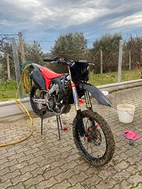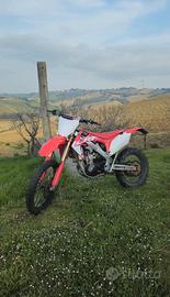 Vendo crf 250r del 2012 targata, immatricolata nel 2013, omologata per 2 persone. la moto ha circa 70h, mai uso pista solo strada e qualche enduro. Recentemente è stato fatto il controllo gioco valvole, candela nuova, paraoli forcelle nuovi, reset centralina, presso ragni moto fabriano (honda). Ha un impianto elettrico completo (frecce ant. e post., faretto led, clacson, idrostop, e pulsantiera) unico problema è stato scollegato da ragni moto per una lavorazione e quindi ora siccome non lho piu usata non è collegato e bisognerebbe perderci un po di tempo. SCARICO COMPLETO leovince x3 carbonio, serbatoio cmt carbonio, paramotore carbonio, frizione REKLUSE automatica (cedo anche originale), piastre e altri componenti in ergal e 2 kit di plastiche, uno nero e laltro graficato bianco e rosso, portatarga estraibile, cavalletto. tagliando fatto neanche 2h fa, fatto sempre ogni 15h con motul transoil 10w40 per il cambio, motul 7100 10w40 per il motore e filtro olio hiflo. sempre scaldata bene prima di girarci e pulito il filtro dell aria ogni 2/3 uscite. vendo perche purtroppo non ho tempo di usarla. prezzo trattabile dopo visione