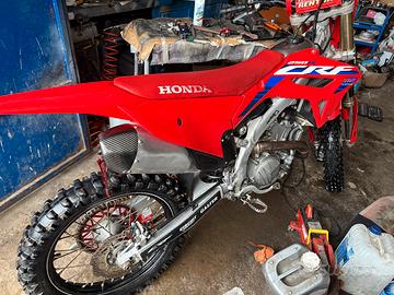 vendo crf 250r 2023 tenuto maniacalmente motore rifatto completamente dimostrabile, fondello marmitta in carbonio, para radiatori in carbonio, pedane in titanio, gomme nuove mousse davanti nuova e camera d’aria dietro nuova, trasmissione nuova, la moto ha 800€ solo di preparazione forcelle e mono posteriore e tante altre cose sempre tagliandata ogni 8 ore per maggiori info in privato