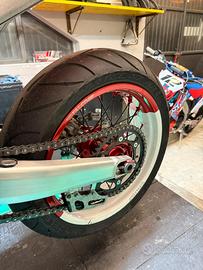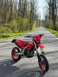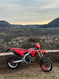 Buongiorno, vendo per passaggio a cilindrata superiore questa la mia fantastica Honda Crf 450 del 2021 omologata motard, la moto dal attivo ha al incirca 100ore mentre il motore ne ha 65,il tagliando é appena stato eseguito, (ogni 10 ore) quindi a 75 andrà fatto il prossimo, per il resto la moto é davvero in ordine e non necessita di nessun lavoro da fare, monta dei cerchi falco bicolor dove nella metà bianca presenta qualche seghetto di sverniciatura dovuta alle classiche sassate che arrivano durante l'utilizzo, conta chilometri nuovo appena montato frecce funzionanti anche loro appena sostituite e porta targa pieghevole dbr anche lui nuovo montati tutti al incirca un mesetto fà, scarico originale, possibilità di mandarvi altre foto e informazioni in più in caso ci fossero domande, in caso si può venirla a vedere e provare se realmente interessati prezzo 8800euro per favore no perditempo prezzo davvero poco trattabile perché la moto parla da sola.