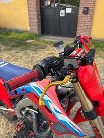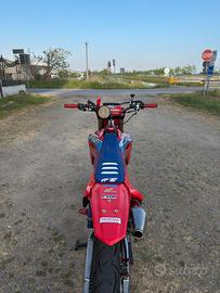Vendo Honda CRF 450R del 2005 per passaggio a macchina TARGATA GUIDABILE CON PATENTE A2 E OMOLOGATA PER 2 PERSONE Tagliandata ogni 15 ore con olio bardhal e filtro HI-FLO e filtro aria pulito e oliato ogni 2 tagliandi Secondo propietario con meno di 50 ore dall’ acquisto Monta : SCARICO COMPLETO AKRAPOVIC in TITANIO con tagliafiamma POMPA RADIALE ACCOSSATO 16x18 DISCO 320mm PARA MOTORE in CARBONIO e catalogo ERGAL COMPLETO GOMME CONTINENTAL CONTIATTACK 3 90/90-21 & 140/80-18 (misura difficile da trovare su un cerchio da enduro) KIT RESTYLING 2022+GRAFICHE PERSONALIZZATE SALVONS DESIGN HOLO/GLITTER IMPIANTO LUCI A BATTERIA INDIPENDENTE E SCATOLA FUSBILI+ATTACCO CARICATORE PORTA TARGA REGOLABILE Alla vendita saranno ceduti tutti i pezzi originali e un set di cerchi oro da cross + 2 treni di gomme Prezzo trattabile dopo presa visione della moto Venduta con formula vista e piacuta Tag: crf450,crf250,yzf450,yz125,smr450,ktm450,sx125,exc125