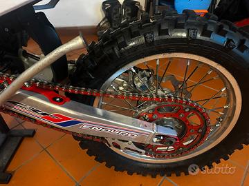 moto in ottime condizioni con 240 ore pistonata a 180 ore gomme e mousse nuove ( hanno fatto un uscita) paramotore ,accessori in ergal ,para radiatore ,ecc ecc moto a iniezione non ha L’avviemento elettrico ma con una pedalinata si mette in moto