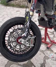 Vendo a malincuore crf 450 supermoto pronto pista del 2005, dispongo di 2 telai uno targato ed uno non (con un aggiunta cedo anche quello targato). La moto presenta le seguenti modifiche: motore lavorato, testa lavorata, carter lavorati, carburatore lavorato, frizione anti saltellamento stm, sospensioni preparate supermoto quindi tarate e accorciate, piedino radiale, mono ohlins, scarico completo in titanio arrow, piastre con offset regolabile, forcellone accorciato e allargato, impianto frenante maggiorato brembo con pompa treno brembo, paramotore in carbonio, pedane in regalo con slider, cerchi did tu mess con slick, radiatori maggiorati pompa dell'acqua rifatta da poco, tappi vari in ergal, blocco partenze, paramani pro circuit, sposta catena per non grattare la ruota, telaio lucidato a specchio. Per ulteriori informazioni contattare