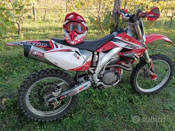 Vendo honda crf450 del 2002 la moto ha pistone e testata rotti causa rottura valvola motore,carter lato frizione da riparare o sostituire perche è bucato,cilindro athena 490 ho 2 scarichi che cedo con la moto e un altro forcellone posteriore,mancante solo di radiatori,attualmente motore smontato dalla moto per ripararlo ma poi sono passato al 4x4 e le moto le sto vendendo