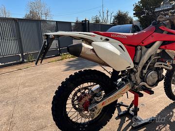 Honda Cre f 450 x del 2011 in ottime condizioni. Tagliandata, Motorino avviamento nuovo, forcelle revisionate, freni ant./post. e frizione fatti da poco, gomme in ottime condizioni. Compreso nel prezzo frizione automatica Rekluse in perfette condizioni e svariati ricarmbi nuovi. Targata e documenti in regola. Contattare per informazioni, possibilità di trasporto. Leggermente trattabile