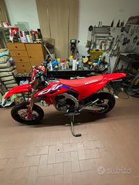 vendo honfa crf 450 r del 2024 red moto tripla omologazione , e passeggieri guidabile con A2 la moto monta : cerchi faba 17 disco 320mm galfer sposta pinza motomaster pompa accossato radiale tubo in treccia la moto ha 55h al attivo in perfette condizioni tagliandata ogni 5 h