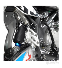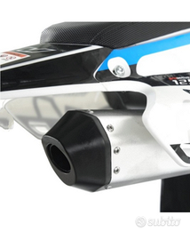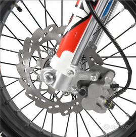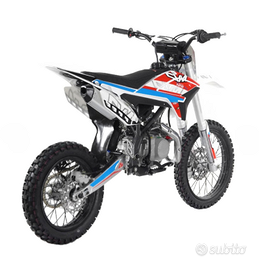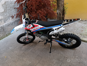 TRATTABILE Usato 3 volte avrà massimo 10/15km 125cc Motore: monocilindrico a 4 tempi raffreddato ad aria Carburatore: PZ26 Capacità serbatoio: 3,2L.t. Avviamento a pedale Cambio 4 marce N-1-2-3-4 Trasmissione: catena 428 Trasmissione finale: catena Sospensioni anteriori: forcella idraulica da 770mm Sospensione posteriore: ammortizzatore idraulico da 350mm Freni a disco Pneumatico anteriore: 17/100= 17" Pneumatico posteriore 90/100= 14" Interasse: 1220mm Altezza sella: 840mm